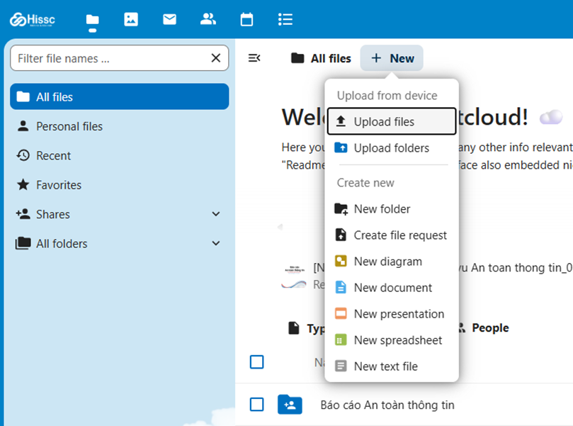 Click vào biểu tượng dấu (+ Tạo mới) và chọn các tùy chọn mong muốn. Cụ thể như sau: