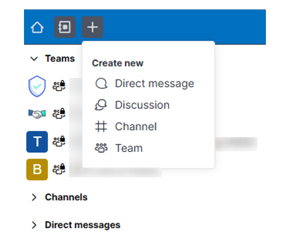 Để tạo Team, Channel, Discussion, Direction message ta thực hiện như sau: