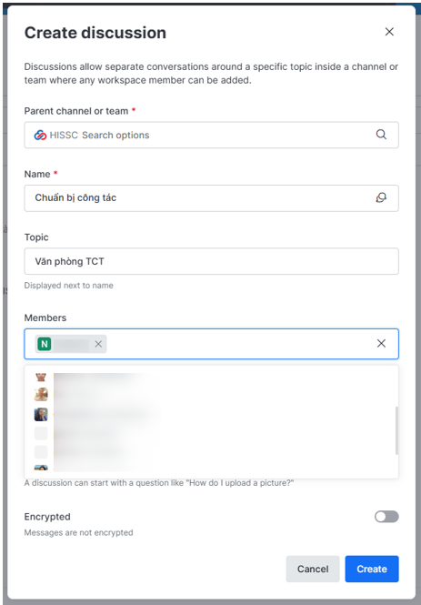 Thực hiện tạo các Disccusions và gán vào các channel liên quan.