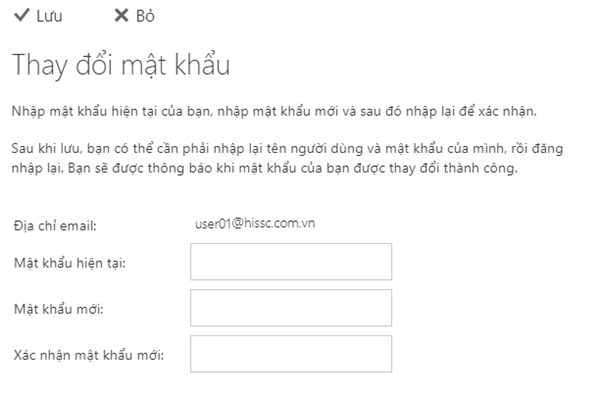 Thay đổi thông tin mật khẩu người dùng