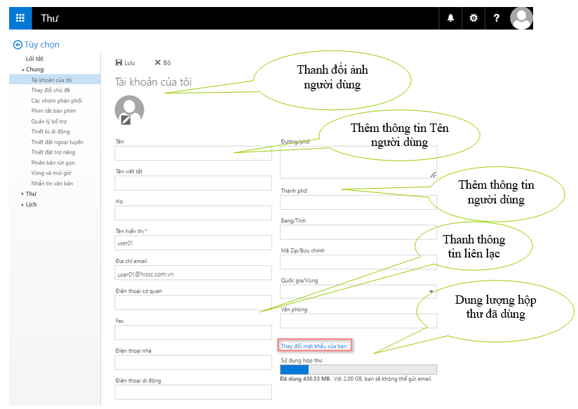 2. Cấu hình các thông tin tài khoản của người dùng