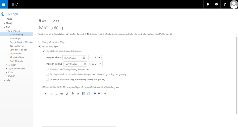 Chức năng trả lời tự động