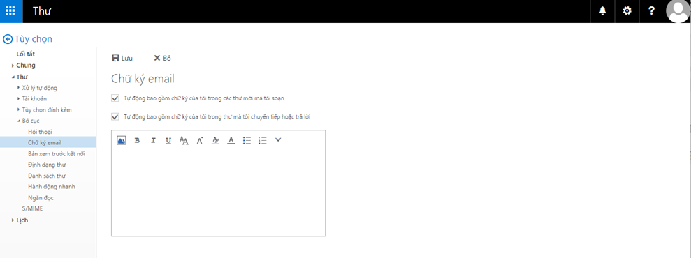 Cấu hình chữ ký cho thư người dùng