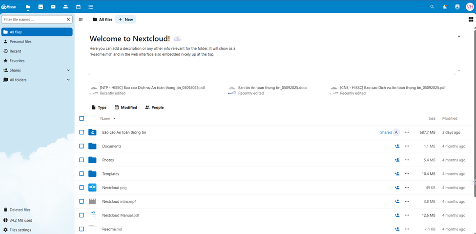 - Trong giao diện này, người dùng có thể thêm, xóa và chia sẻ tệp, đồng thời quản trị viên có thể thay đổi các đặc quyền truy cập. Giao diện người dùng chứa các trường và chức năng sau: