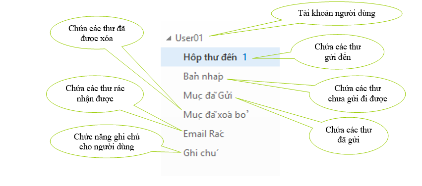Các thư người dùng nhận được sẽ nằm trong Hộp thư đến;